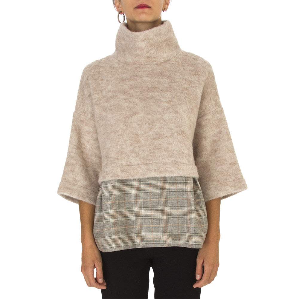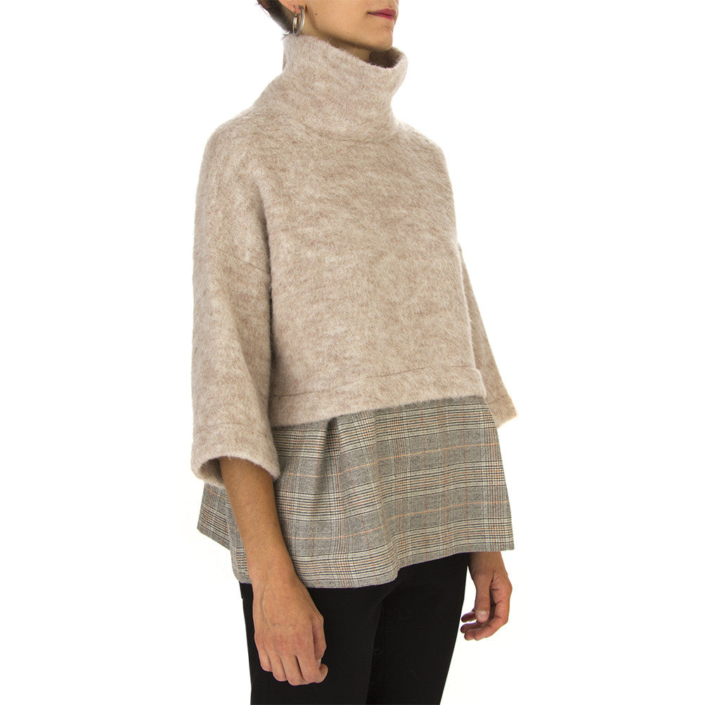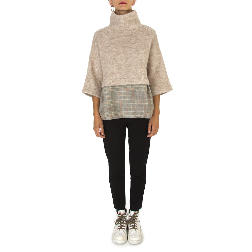 Bioneuma - Wool blend sweater in two fabrics, with high collar and box cut. We love this brand, simplicity, eco-friendly philosophy, this refined style. Wear it with loose pants or a loose midi skirt, boots, coat.