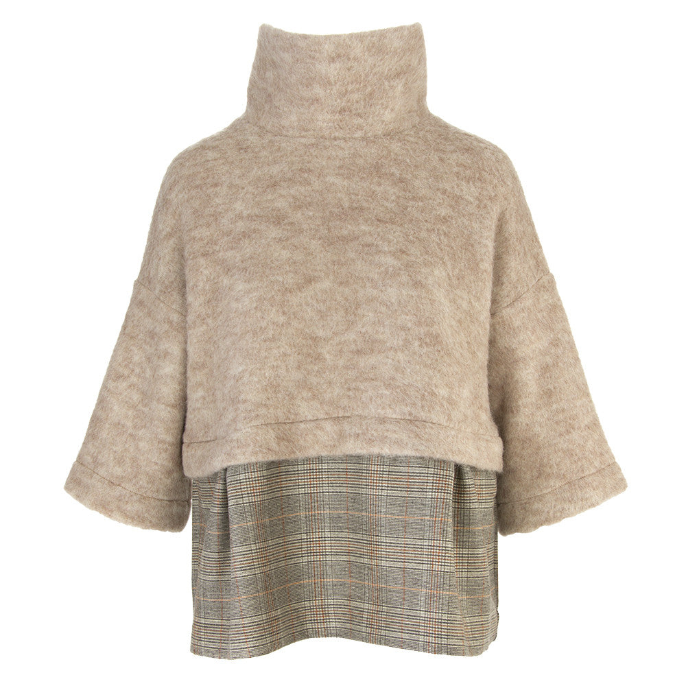 BIONEUMA | SWEATER BEIGE/PRINCE OF WALES WOOL BLEND