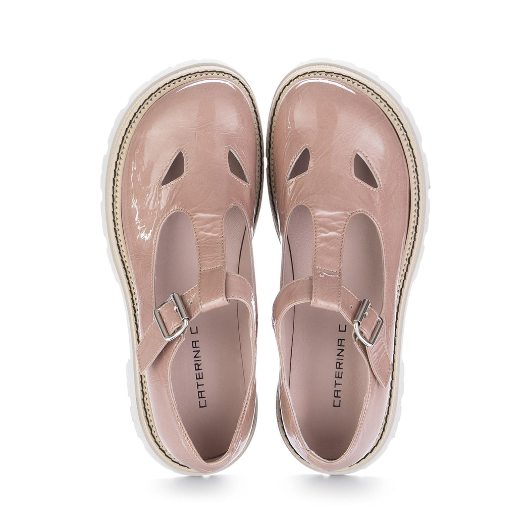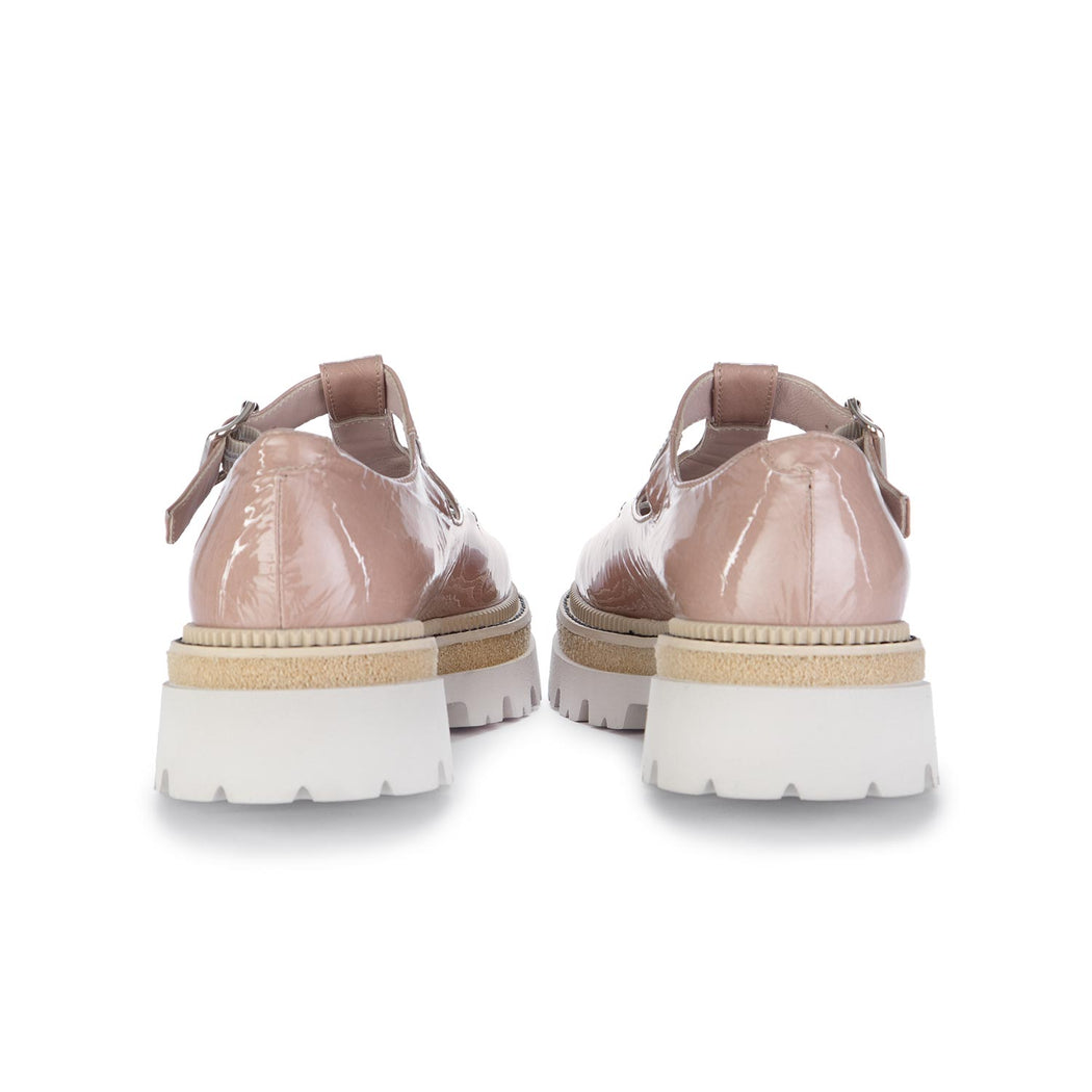 - Shiny leather upper