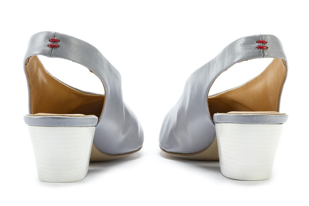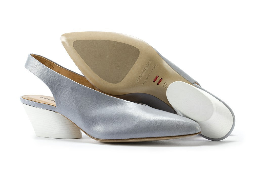 Halmanera - Pointed toe light gray nappa leather slingback shoes with contrasting white heel. We love them for work days or for a lunch with friends, with the classic tube dress, add a red or yellow handbag and go !!! Nice !!