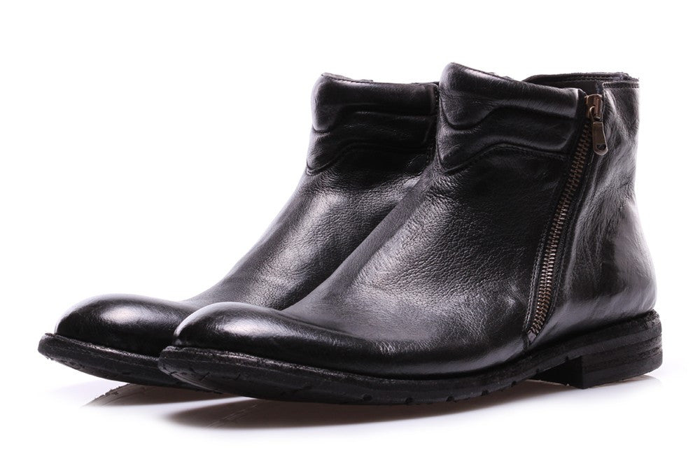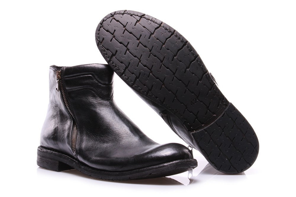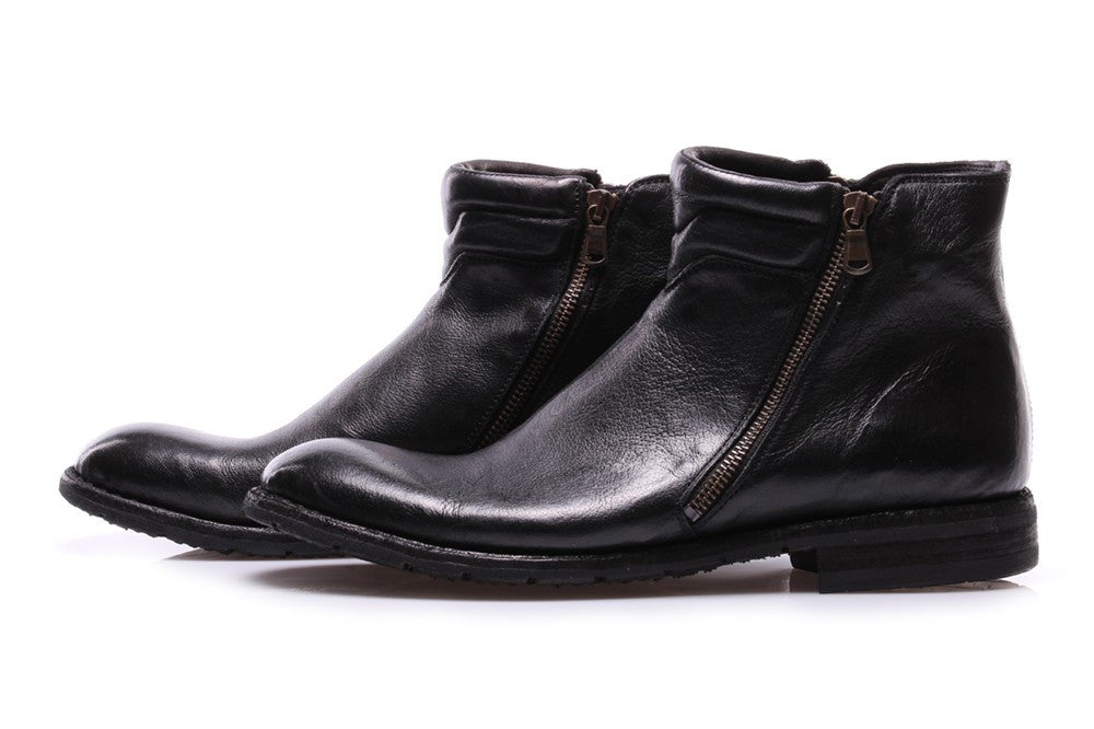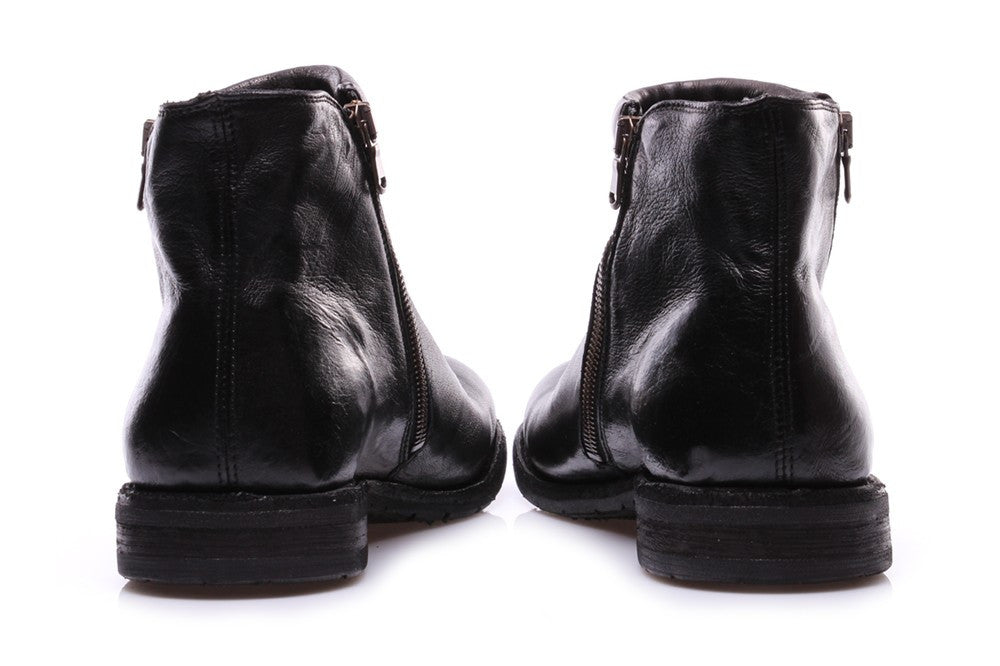 Manovia 52 - Ankle boots in black leather, lined and with ankle padding. They have a rubber sole and a double side zip closure. These are handmade, comfortable, eclectic shoes!!
