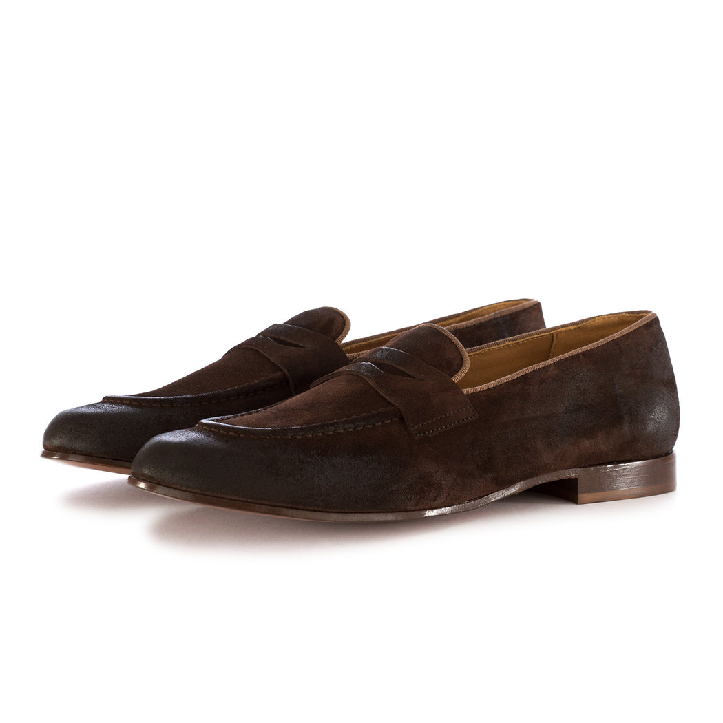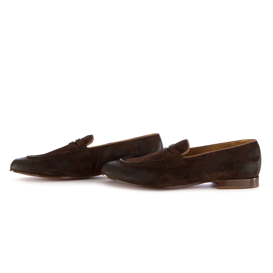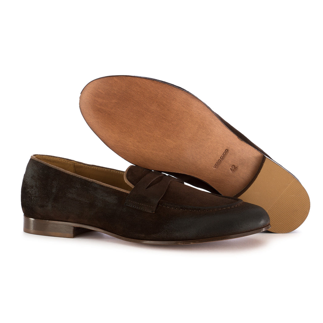 Manovia 52 - Loafers in brown suede, used effect with leather sole and leather insole. Beautiful handcrafted shoes, for your summer days, you know that certain occasions deserve special attention, even for a dinner or a business appointment, you can't go wrong.