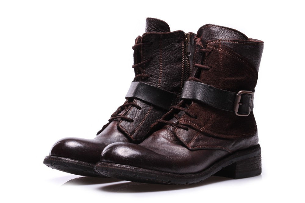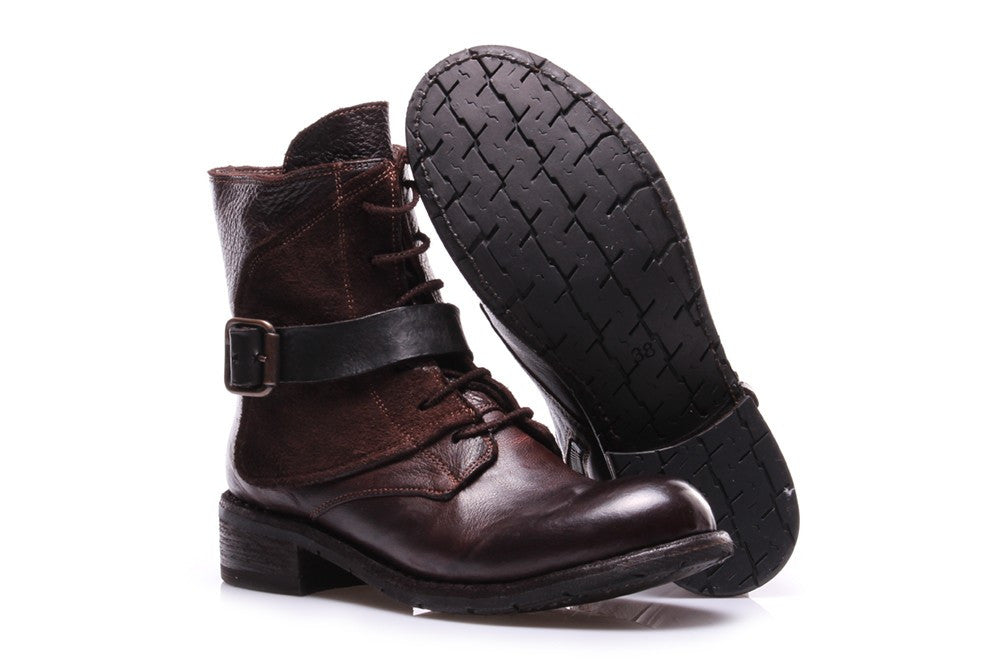 Manovia 52 - Ankle boots in dark brown leather with laces, zip closure and ankle strap. Excellent handmade product, if you love shoes that don't go out of style, if you love being comfortable but with style.