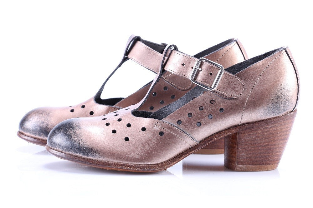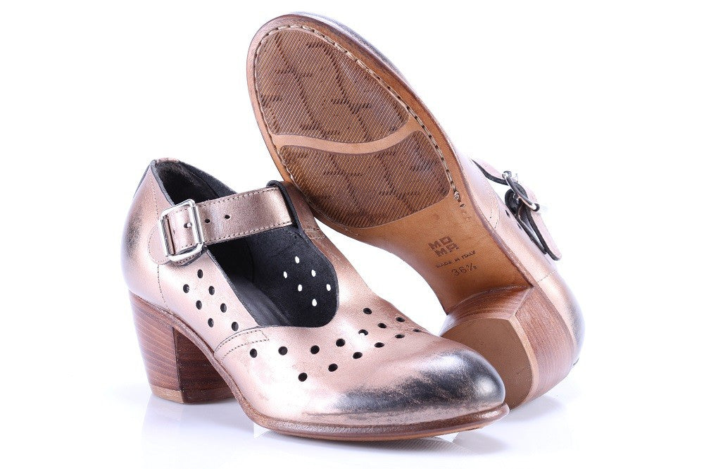 Moma - Shoes in perforated calf leather, the particular processing of the leather makes them unique, they have a round toe, rubber sole and sturdy heel. Handmade shoes, soft, comfortable; wear your Moma to dance, to walk, to emphasize your legs.