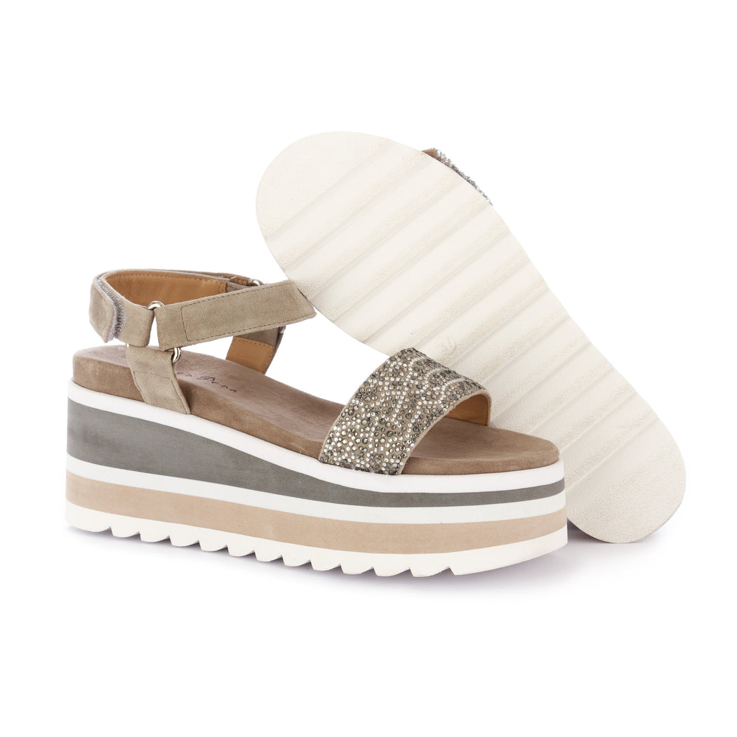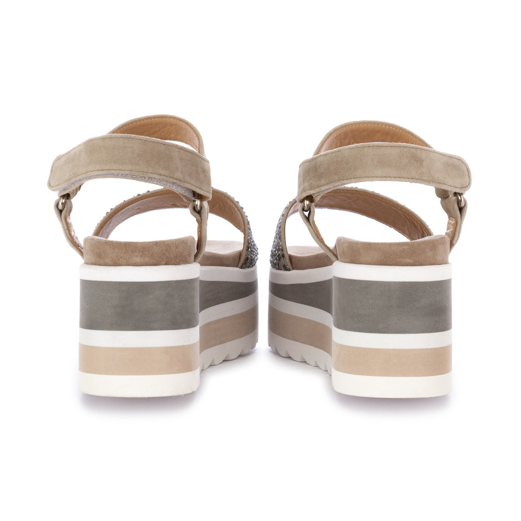 ALMA EN PENA | SANDALI CON ZEPPA CAMOSCIO GRIGIO BEIGE