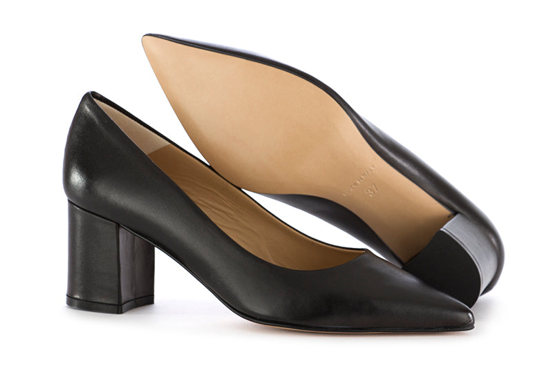 Crispi - Scarpa con tacco in nappa nera, interno in pelle, con suola sintetica e tacco largo. Il bellissimo decollete per completare i tuoi abiti da lavoro, comodo, morbido e pratico, ti dà anche qualche cm, non male vero? Made in Italy.