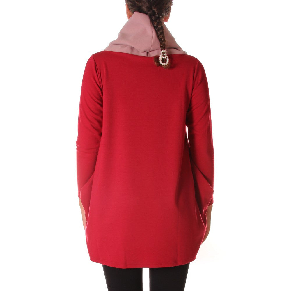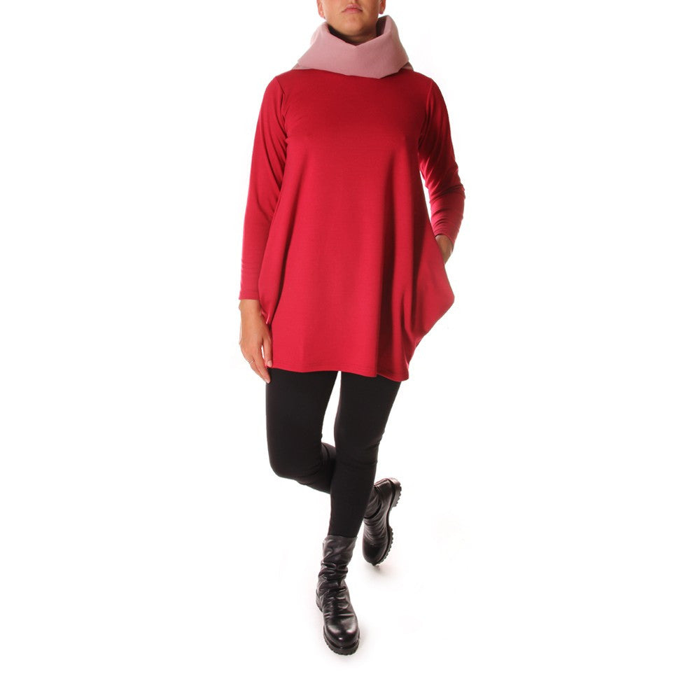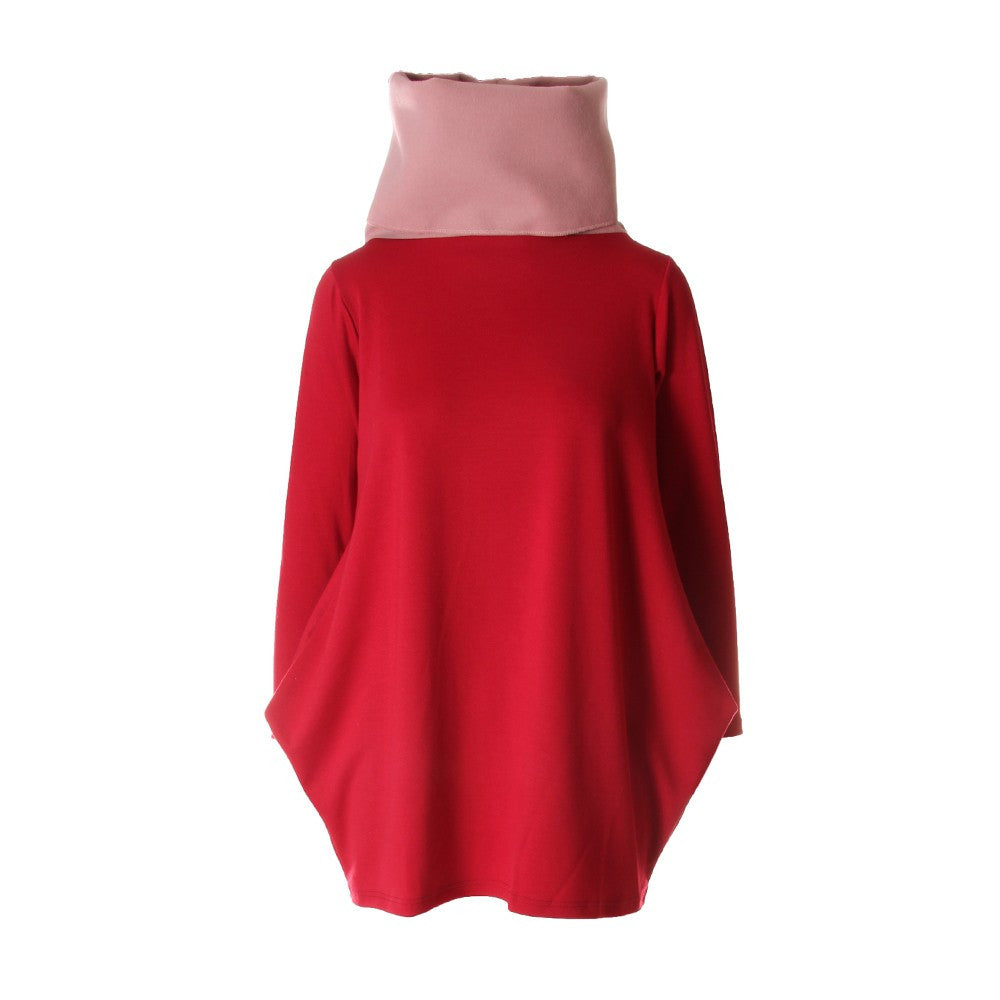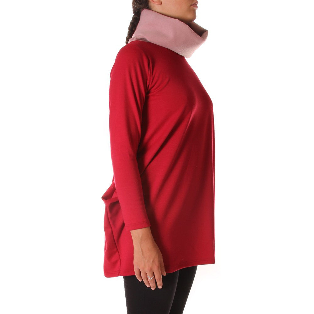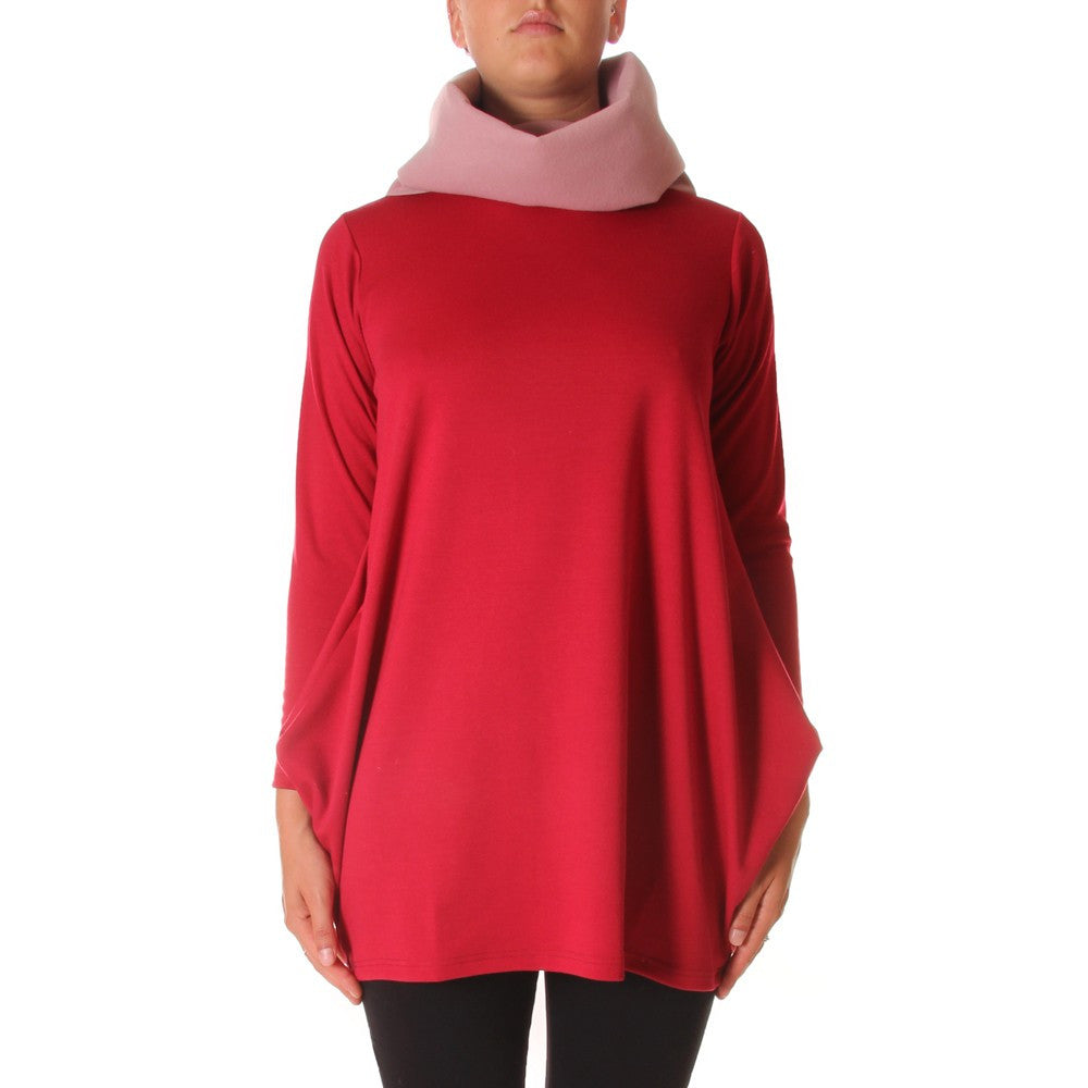 Au Petit Bonheur - Burgundy and pink stretch viscose sweatshirt, soft with donut neck. Perfect for between seasons, with a black skirt and boots, with skinny jeans or leggings and chelsea boots, comfortable, informal, yep.
