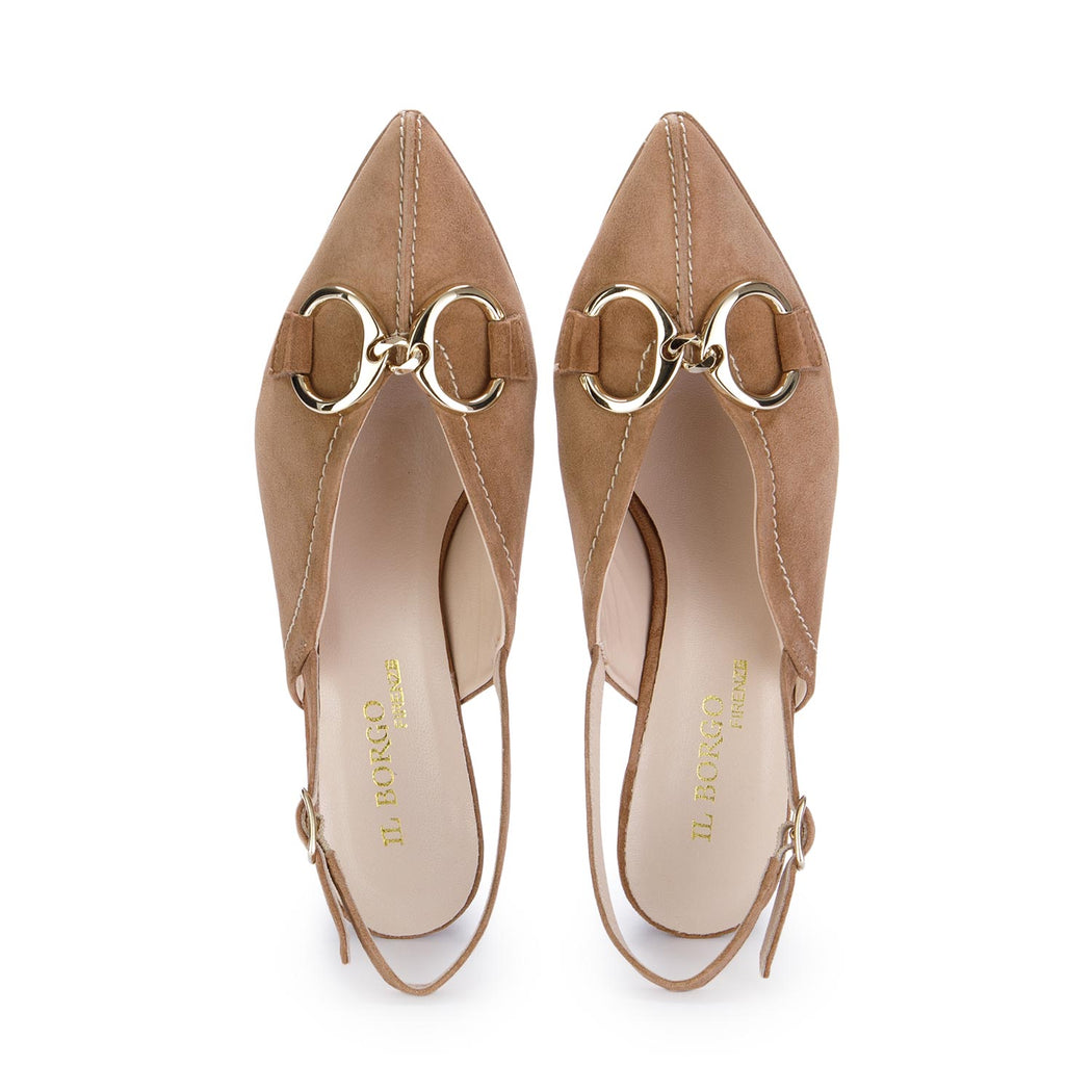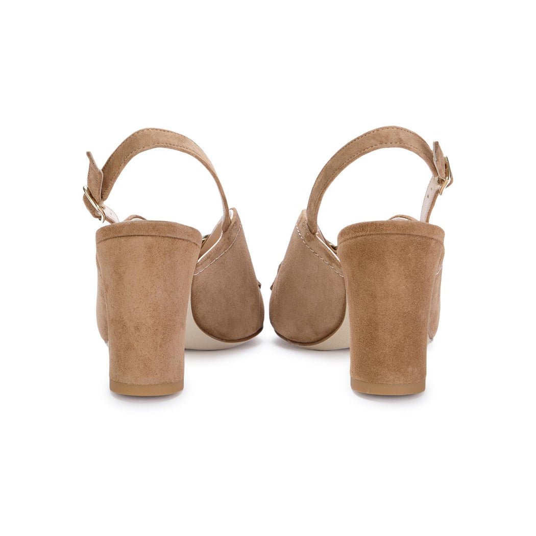 - Heel covered in suede with rubber base