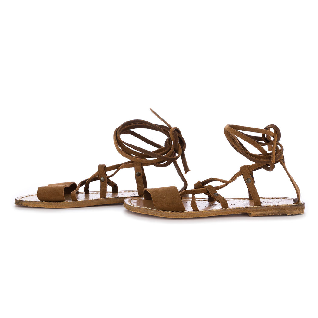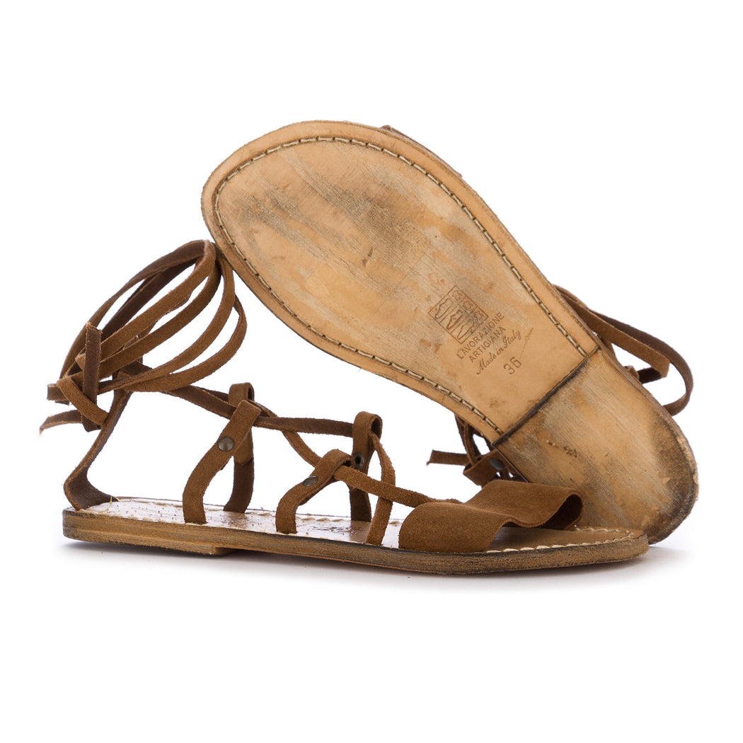 L'Artigiano Del Cuoio - Nubuck 519x sandals in light brown leather. They are the summer sandals par excellence, handmade, always current, reminiscent of gladiator's shoes. Perfect with long dresses, with short shorts, with floral patterns. L'Artigiano del Cuoio is Made in Italy.