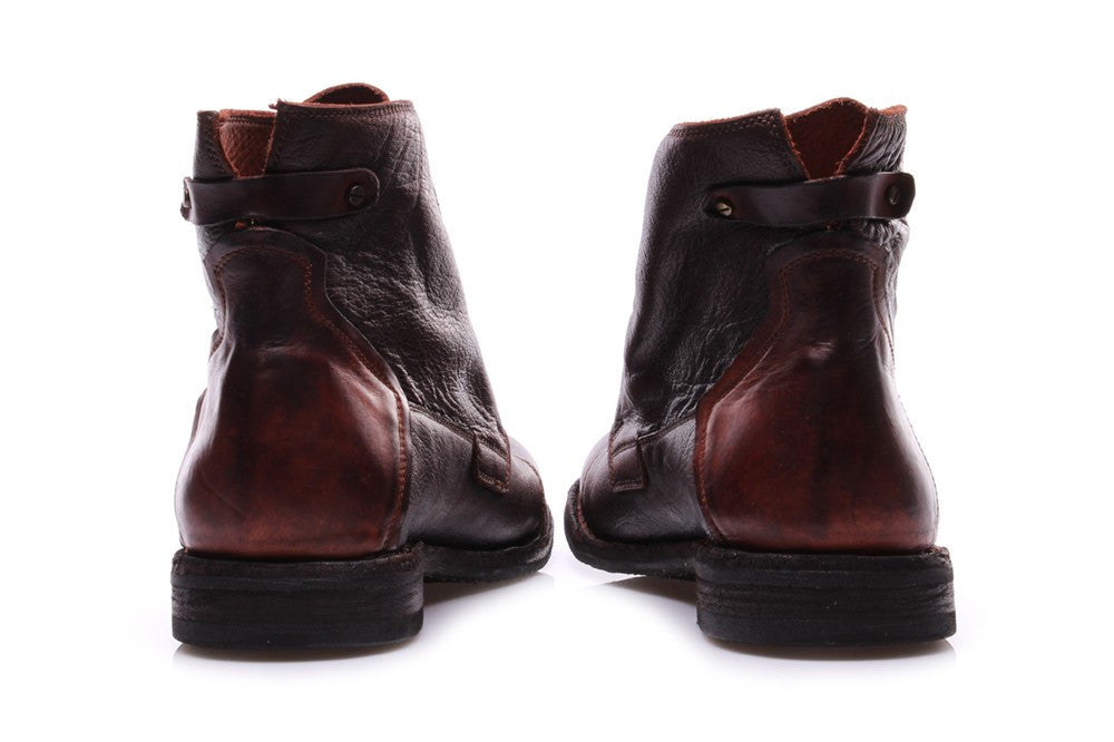 Manovia 52 - Ankle boots in brown aged leather with laces, rubber sole with "ideal" stitching and metal details. Beautiful handmade, classic shoes. You have been looking at them for a while, this is the time to get yourself a nice gift.