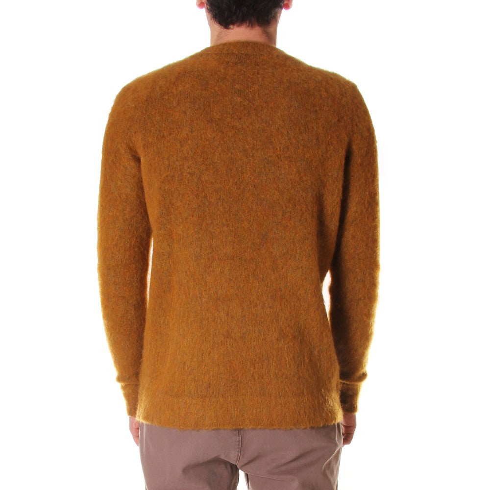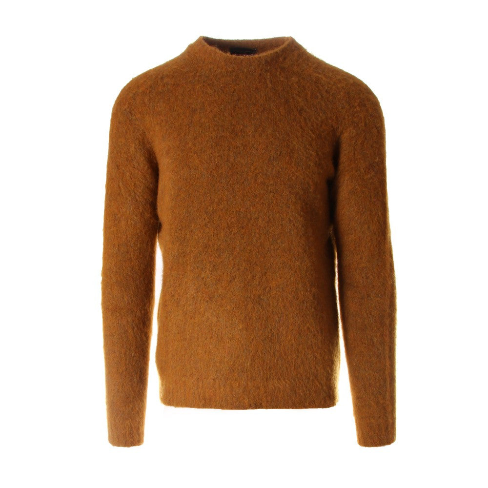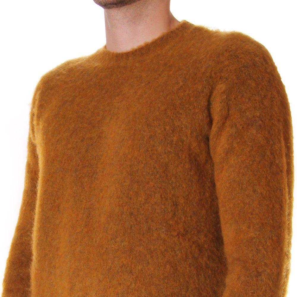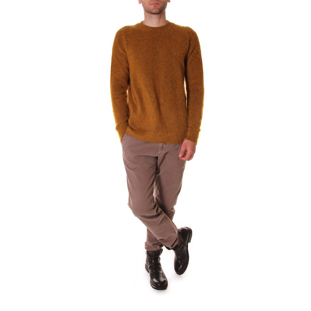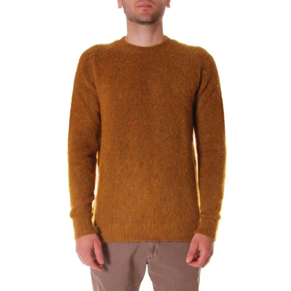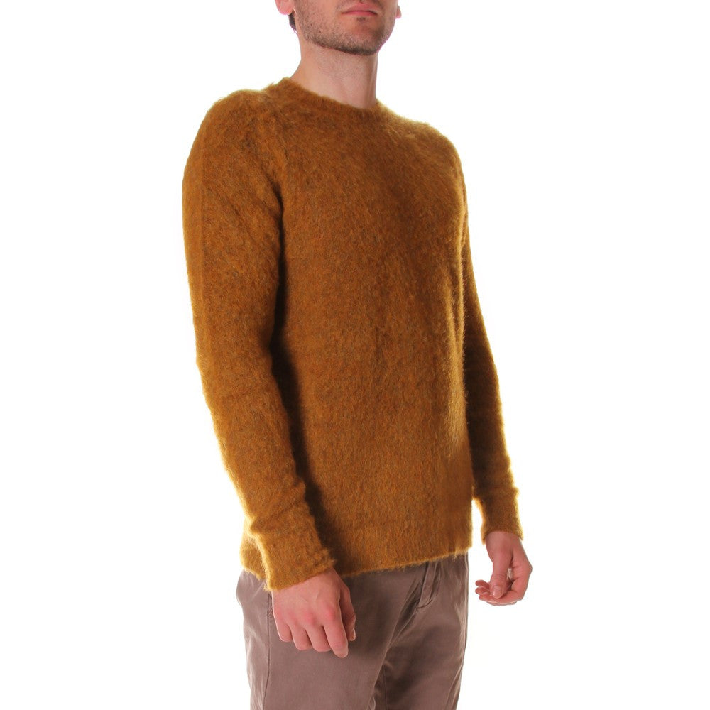 Wool&Co - Warm winter sweater in ochre yellow with round neck. This sweater has a regular fit and lateral splits. Garment made in Italy.